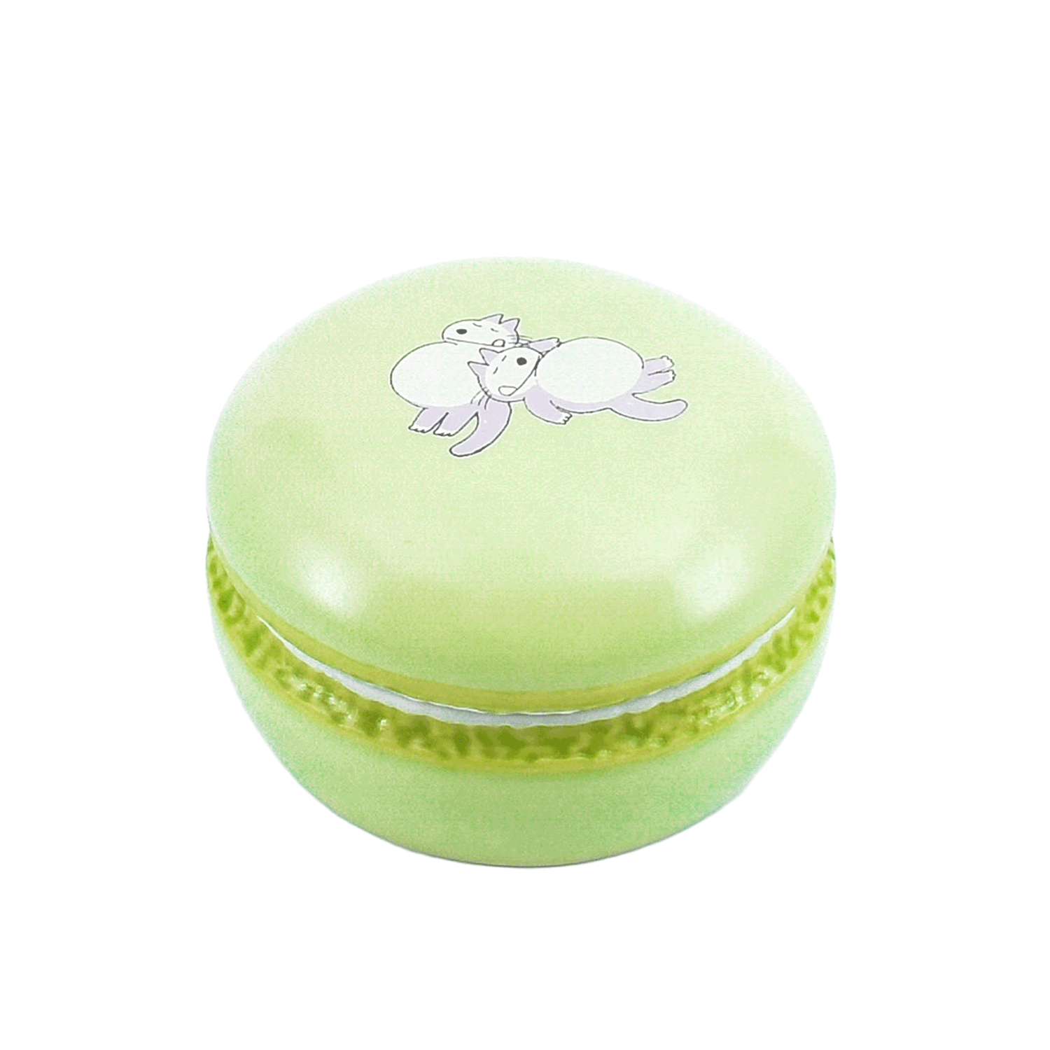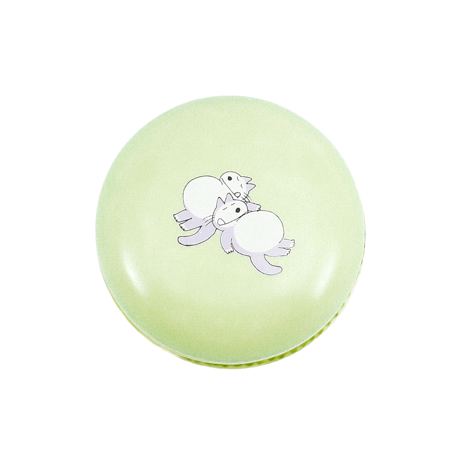 マカロン型ケースに、お腹をふくらませて満足げにねているねこたち。