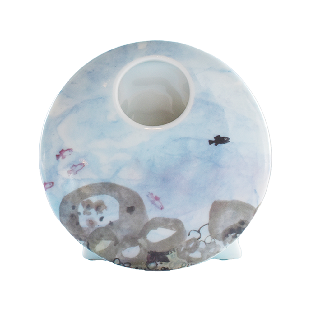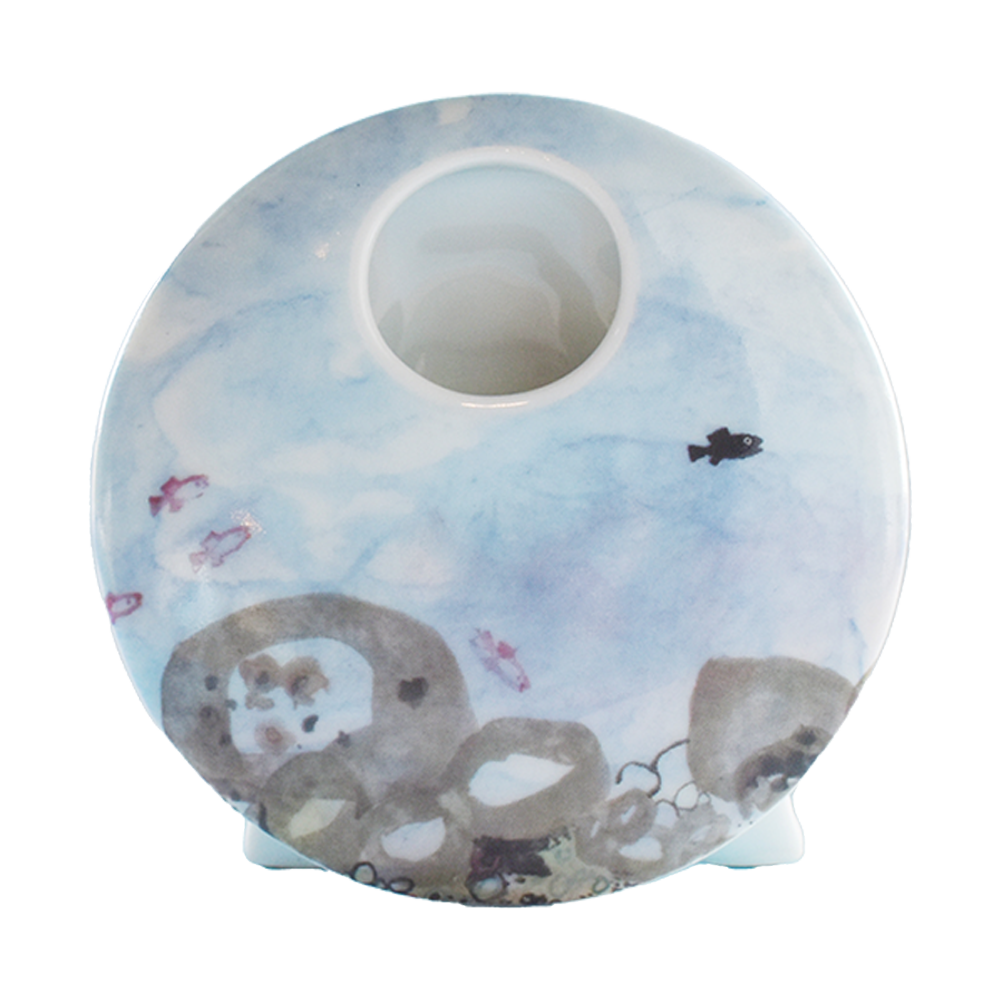 絵本のワンシーンを描いた、海のようにやさしい色合いのペンホルダーです。